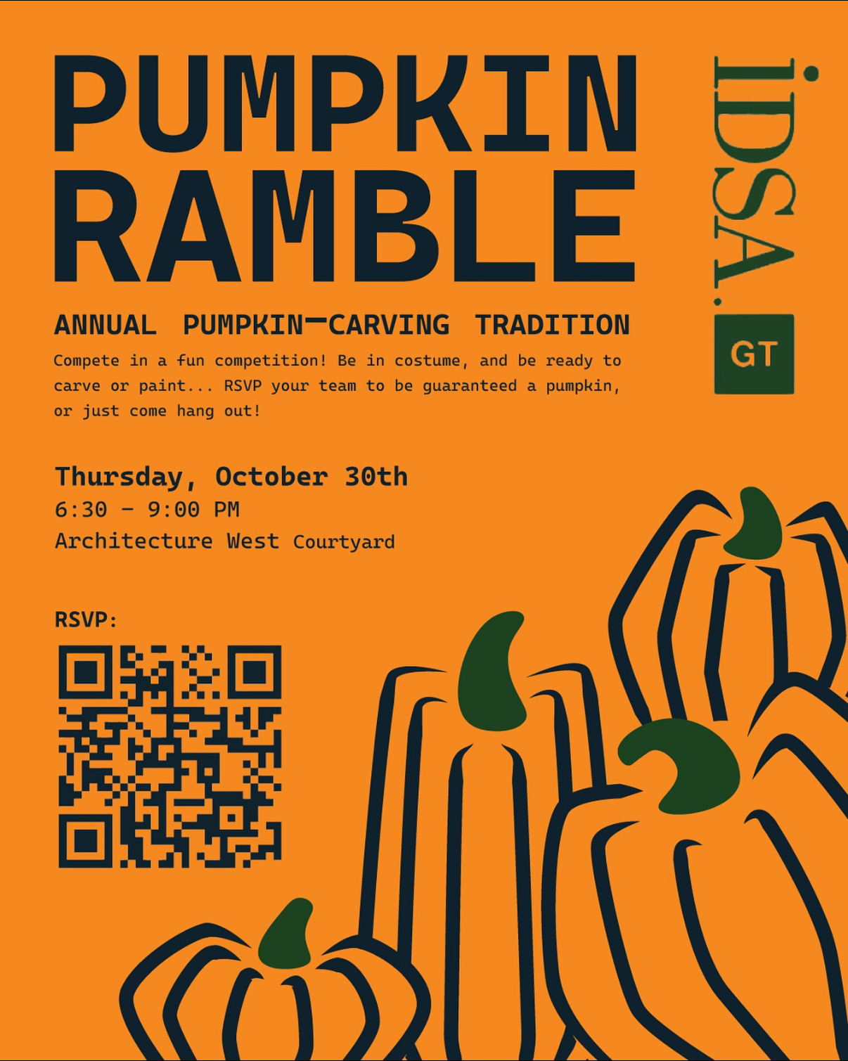 Join the Industrial Design Society of America student chapter for its annual pumpkin carving event. Be in costume and be ready to carve or paint!