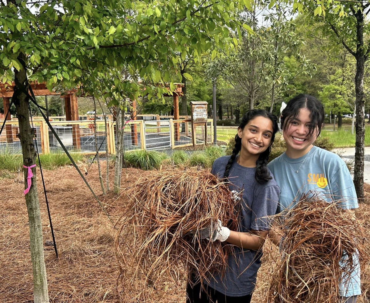 Members of the Sustainability and Infrastructure committees pariticpate in an Earth Day event on the Georgia Tech campus. Photo credit: Instagram/@GTSGA