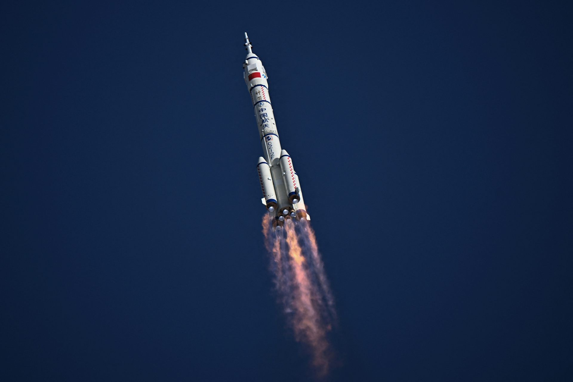 China’s Shenzhou-20 spacecraft – shown here hitching a ride on a Long March-2F carrier rocket – was hit by a piece of space debris. Pedro Pardo/AFP via Getty Images