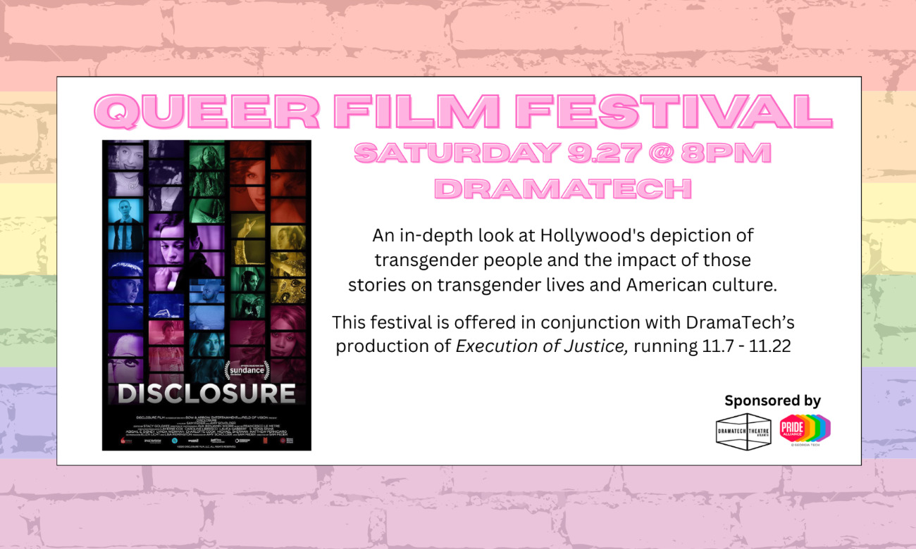 Join DramaTech and Pride Alliance for the third event in a series of queer film screenings featuring movies and documentaries about queer history! This week, we're watching Disclosure, a 2020 documentary about trans representation in Hollywood. Stick around after the show for a short discussion about the documentary. We'll have popcorn and some light snacks!