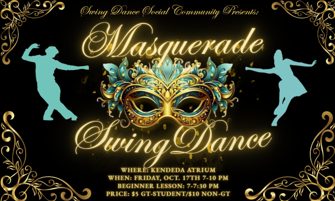 Swing the night away and join us for a magical dance! On Friday, October 17th, 7 - 10 PM, Swing Dance Social Community is hosting a Masquerade Dance in Kendeda Auditorium. No opportunity to dress up? THIS IS YOUR MOMENT. Don't worry if you can't dance yet (Cinderella was a terrible dancer; she even lost her shoe). We have a beginner lesson from 7-7:30 PM. We also have plenty of lovely members who would love to show you new moves. Meet new people with a hint of mystery. No experience or partner necessary! This dance is open to everyone. We hope to see you there!